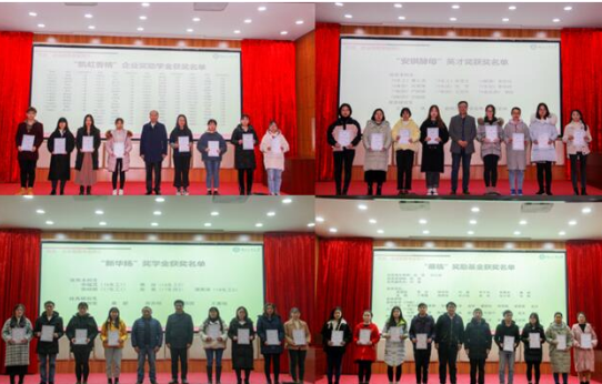 随后,学院院长陈雄宣读了获得2019年度“安琪酵母”英才奖、“新华扬”奖学金、“雁临”奖教奖学金、“凯虹香精”奖助学金名单,参会的领导和嘉宾为获得奖助学金的师生颁发了荣誉证书。